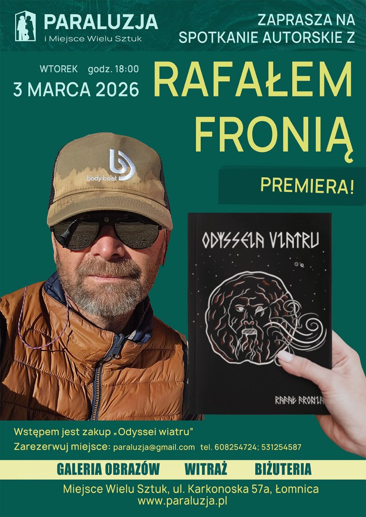 Spotkanie 3 marca o godzinie 18:00 będzie poświęcone przemianom, które dokonują się w nas podczas podróży. Opowiem o samej książce i króciutko o treści. Będzie kilka akcentów muzycznych w wykonaniu Paraluzji oraz prelekcja zdjęć, które są zapisem chwil z podróży, tych które miały wielki wpływ na moje życie i które wiele – jeśli nie wszystko – zmieniły. Podczas prelekcji przeczytamy fragmenty wybranych opowiadań.